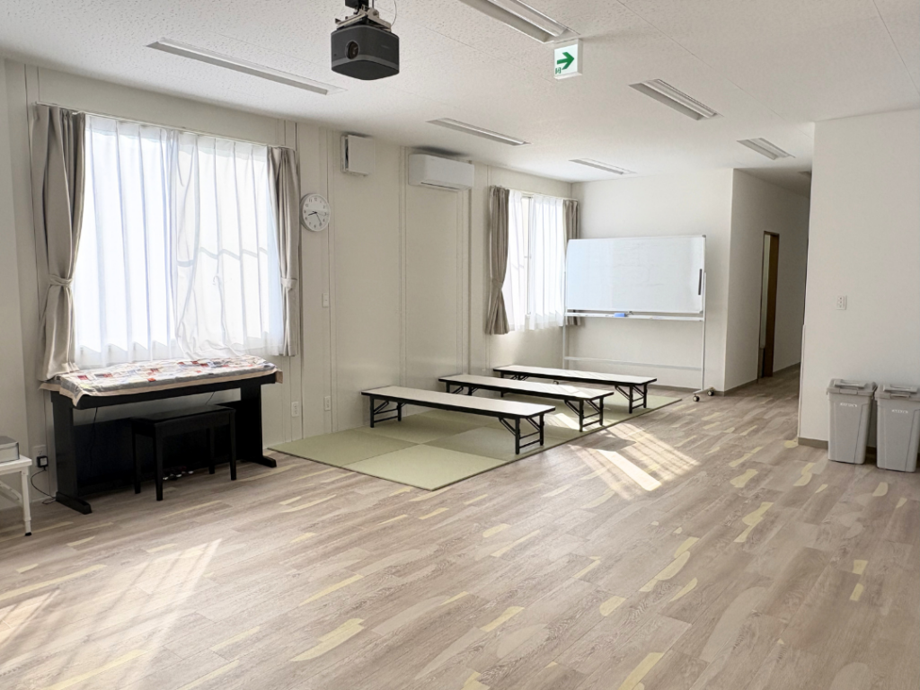 床には、クッション性の高い畳を敷いていますので、安全に体を動かす